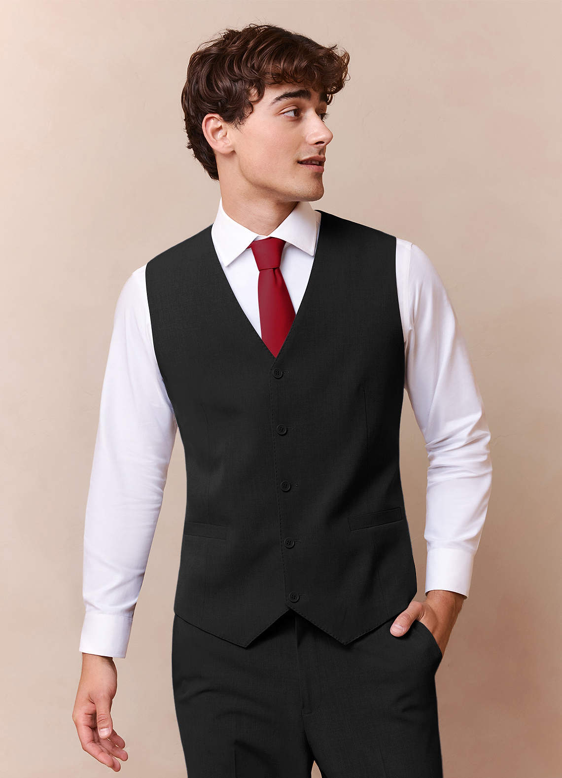 Black Suit Black Shirt Red Vest Red Tie