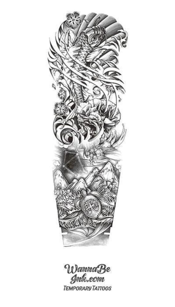 Koi Fish Tattoo Half Sleeve Sketch