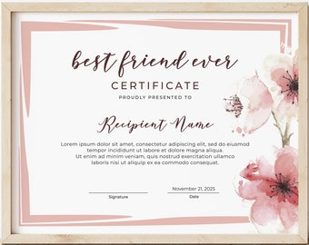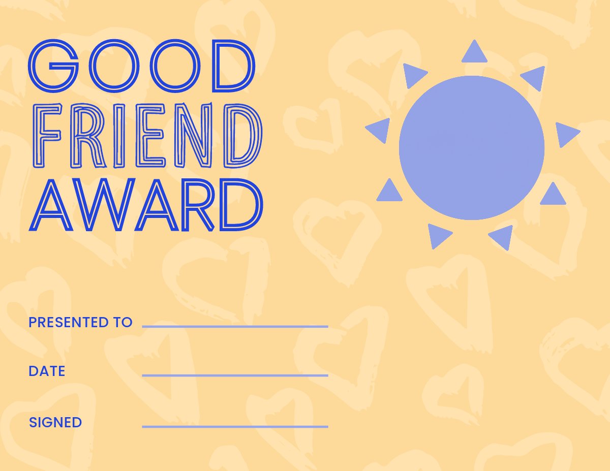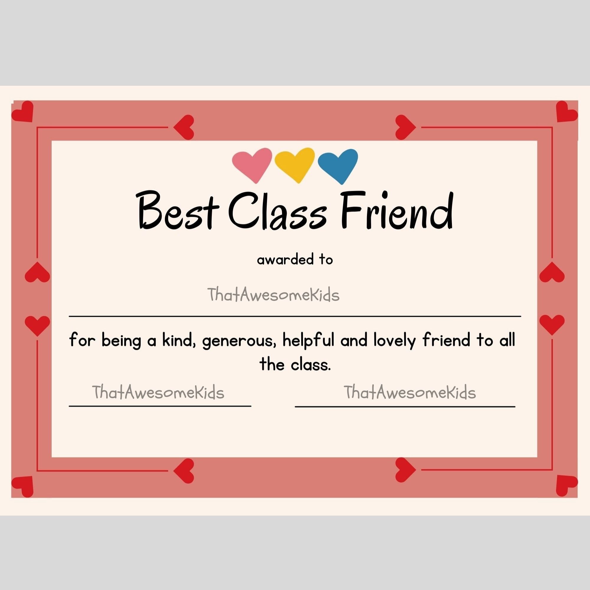 Free friendship award certificate template by PlanBee Present your BFF with a Best Friend Award. | Free certificate templates, Certificate templates, Awards certificates template Friends can use this free, printable certificate of friendship as a gift. It is decorated with a golden border and a… | Friendship, Certificate, Good morning quotes Best Class Friend certificate template in Illustrator, PSD, Word, Pages - Download | Template.net Buy Editable Best Friend Forever Certificate Template, Personalized Gift for Friend, Best Friend Award, Friendship Gift Certificate Download Jet Online in India - Etsy Best Friend Certificate Templates