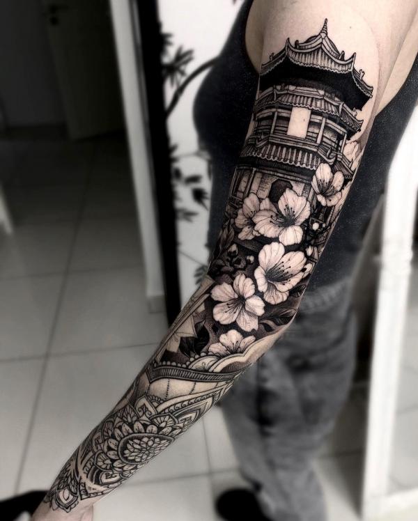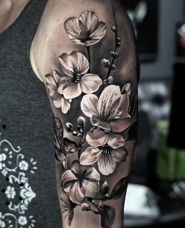 Black And White Japanese Cherry Blossom Tattoos