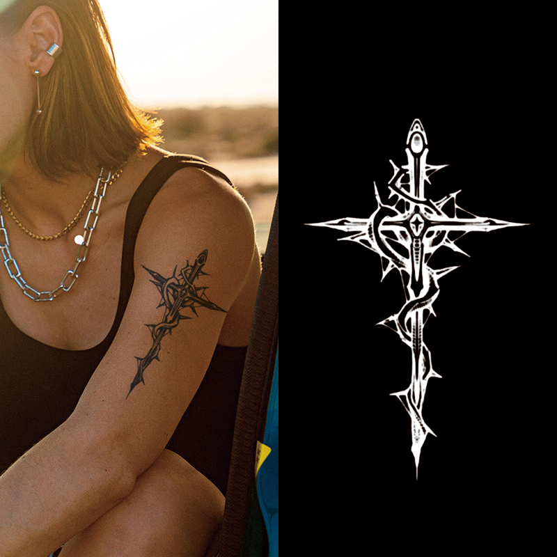 Cross Tribal Tattoo On Arm