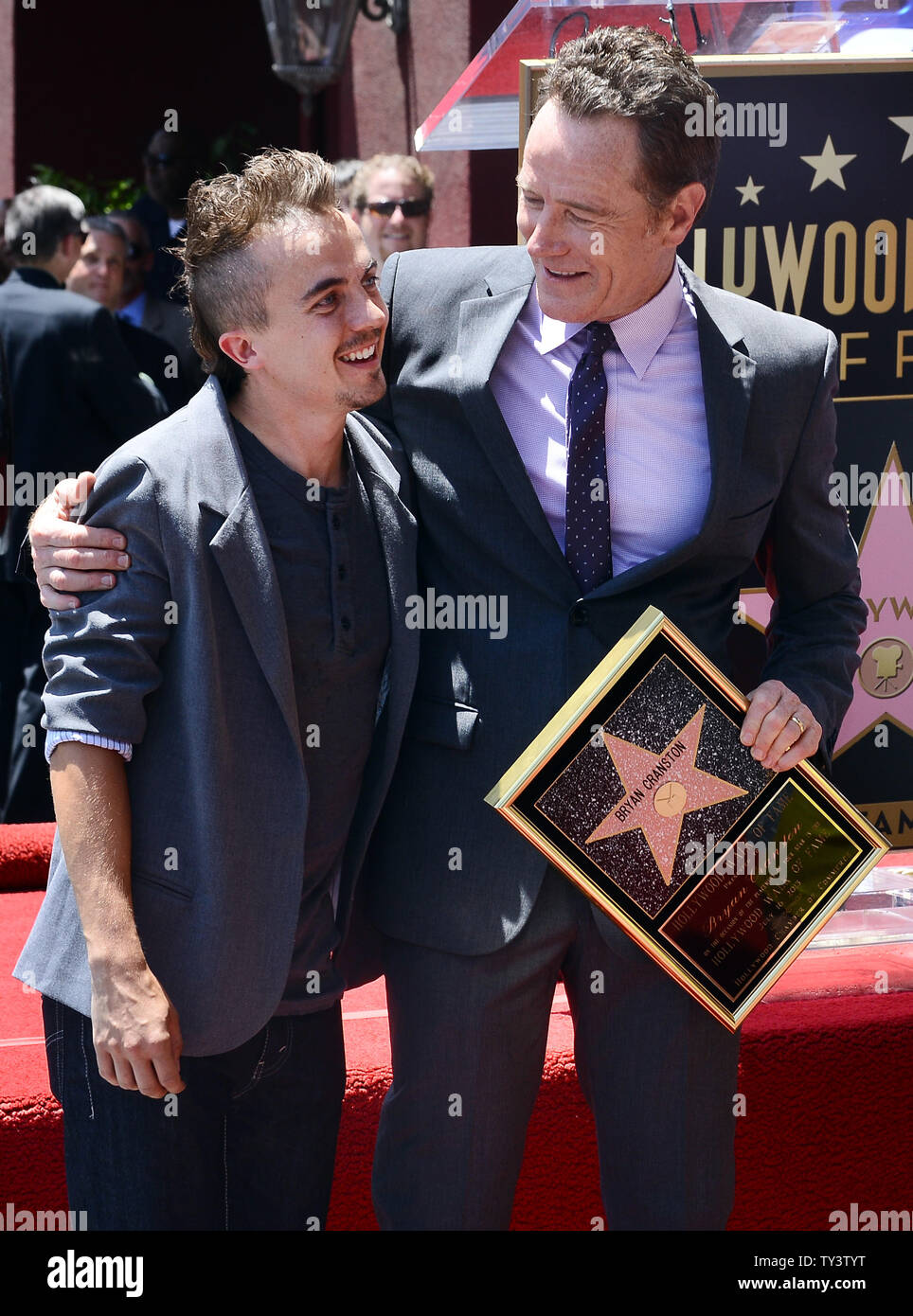 Frankie Muniz Reveals Bryan Cranston Is Writing a Malcolm in the Middle Reunion Actor Bryan Cranston (R) hugs former Malcolm in the Middle cast mate Frankie Muniz during an 1:38 Frankie Muniz, Bryan Cranston, Linwood Boomer, Jane Kaczmarek at the induction ceremony for Star on the Hollywood Walk of Fame for Bryan Cranston, 1717 Vine Street, Los Angeles, CA July 16, 2013. Bryan Cranston got a star on the walk of fame (and Franke Muniz was there, too). | Frankie muniz, Breaking bad, Walk of fame Frankie Muniz Bryan Cranston