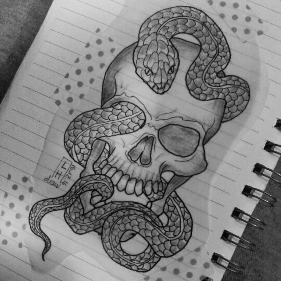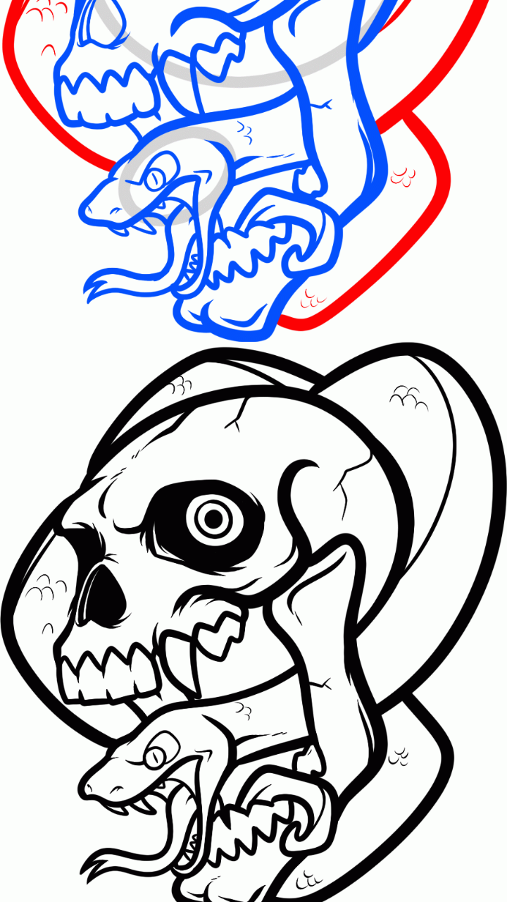 How To Draw A Skull With A Snake
