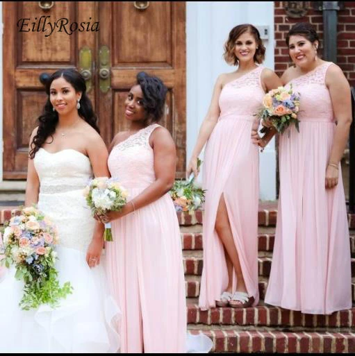 Pink Chiffon A Line One Shoulder Bridesmaid Dresses, Wedding Party Dress, PB155 Light Pink One Shoulder A-line Satin Long Bridesmaid Dress with Slit - Pink / Custom Size PASTEL PINK ONE SHOULDER BRIDESMAID DRESS STYLE SAINT BY MIABELLE Light Pink One Shoulder A-line Satin Long Bridesmaid Dress with Slit Sweet Pleated Bodice One Shoulder Chiffon Bridesmaid Dress Light Pink One Shoulder Bridesmaid Dresses