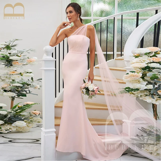 Light Pink One Shoulder Bridesmaid Dresses