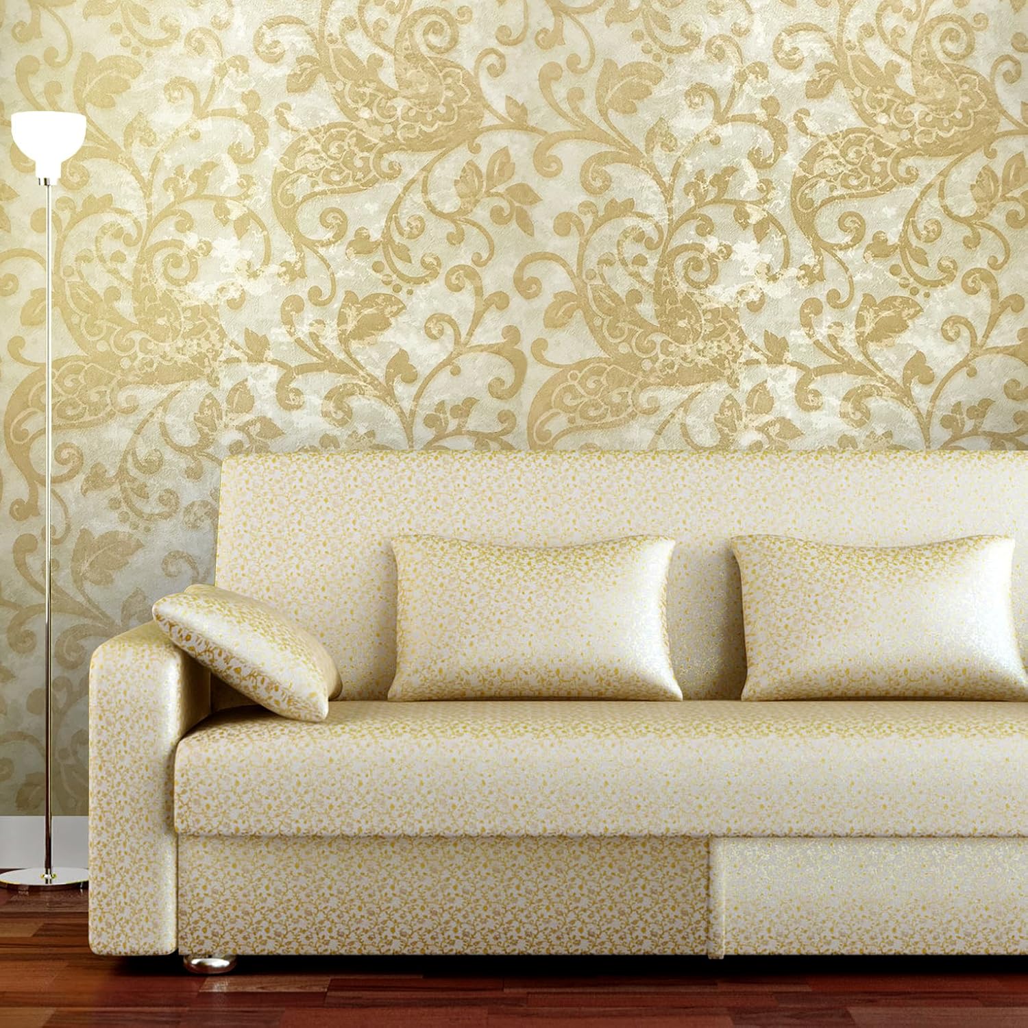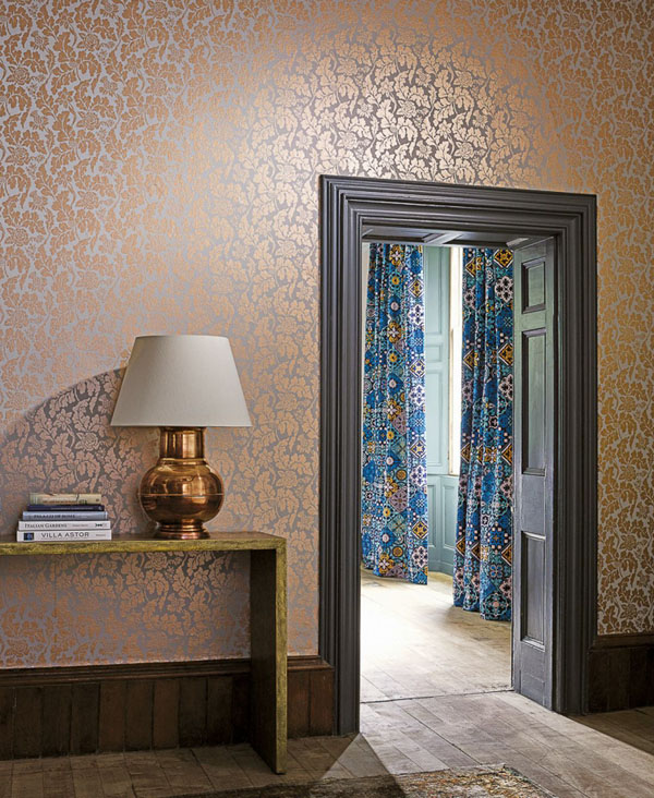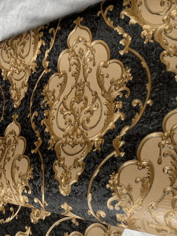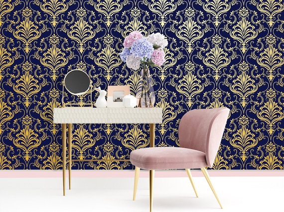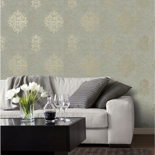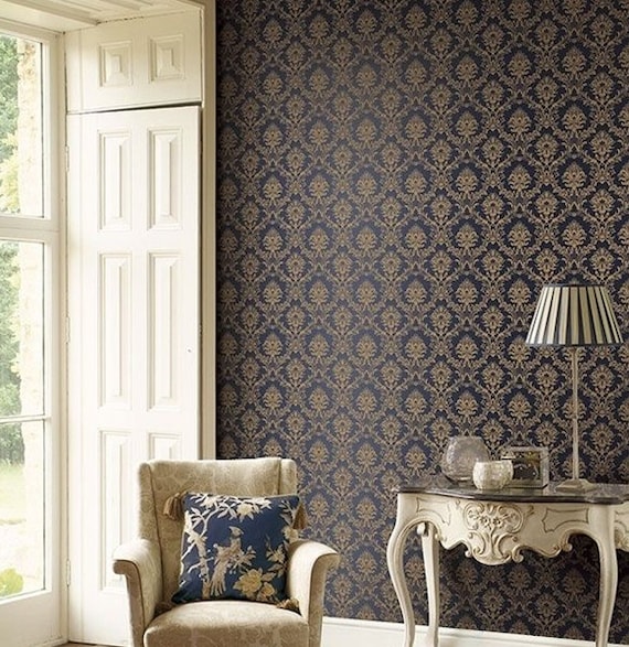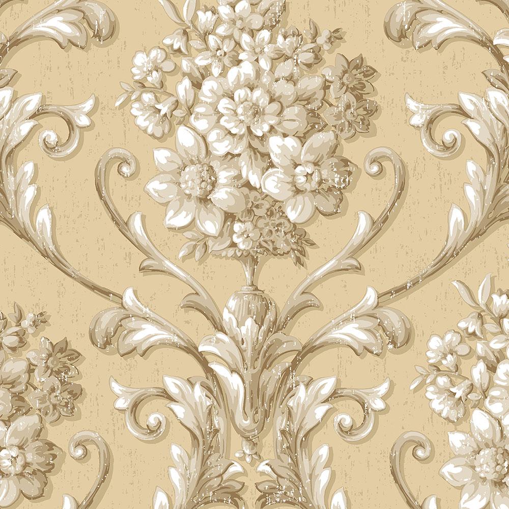 Metallic Gold Damask Wallpaper