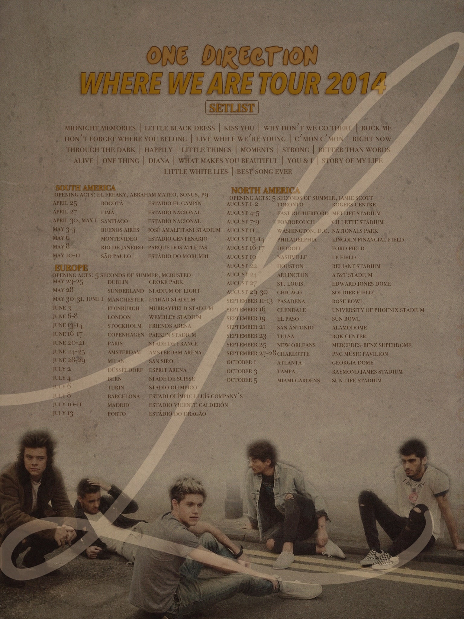 Where We Are Tour (One Direction) - Wikipedia One Direction: Where We Are – The Concert Film - Wikipedia One Direction Where We Are Tour Poster 2014 Midnight Memories Tour 1D Tour Poster Poster One Direction - Movie | Wall Art | 3+1 FREE | Abposters.com One Direction: Where We Are Tour 2014 One Direction Where We Are Tour Poster