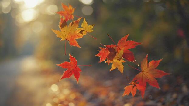 Red Autumn Leaves Falling