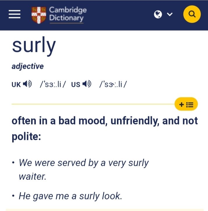 Surly Definition & Meaning - Merriam-Webster Huntington Helps on X: "Can you use surly in a sentence? Show us in the comments! https://t.co/DuAVL75u5I" / X Surly | Adjective | Definition of Surly by Colwords Surly | Wordpandit A.Word.A.Day --surly Surly Adjective