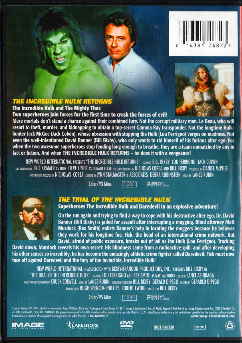 The Incredible Hulk Returns (TV Movie 1988) - IMDb The Incredible Hulk Returns - Wikipedia The Incredible Hulk Returns (TV Movie 1988) - IMDb The Incredible Hulk Returns (TV Movie 1988) - IMDb Amazon.com: The Incredible Hulk Returns / The Trial Of The Incredible Hulk : Bill Bixby, Richard Cummings Jr., Lou Ferrigno, Jack Colvin, Lee Purcell, Rex Smith, Charles Napier, John Rhys-Davies, John Gabriel, The Incredible Hulk Returns
