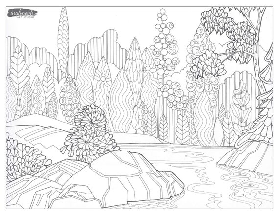 Lake Shoreline, Nature, Trees, Shore, Lake of the Woods, Kenora, Coloring, Original Art, Colouring Page, Printable Forest Coloring Pages - Free Printable Woods Colouring Sheet | Colouring Sheets Pathway Through the Woods Adult Coloring Page, Forest Coloring ... Inspirational coloring pages from Secret Garden, Enchanted Forest ... Woods Coloring Pages