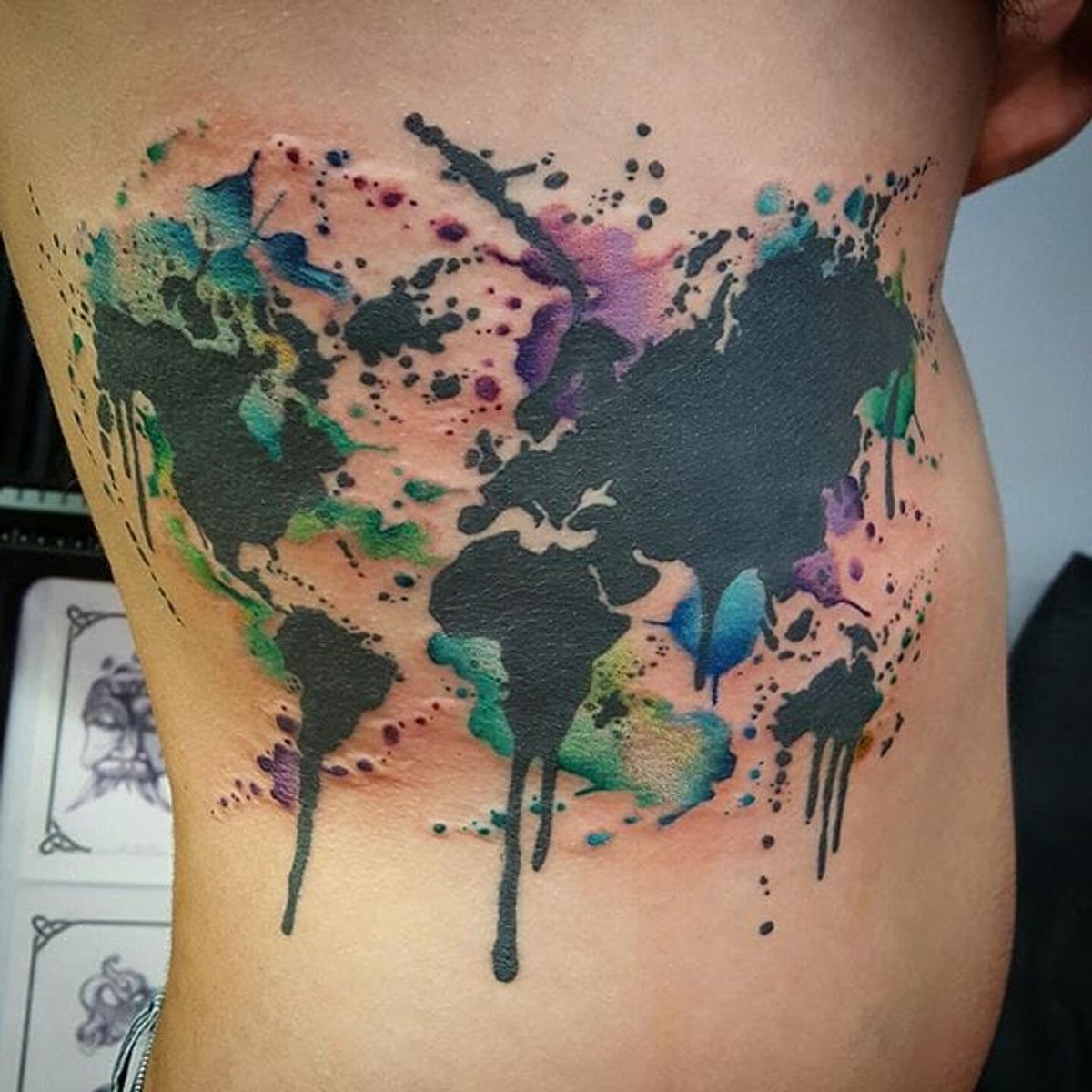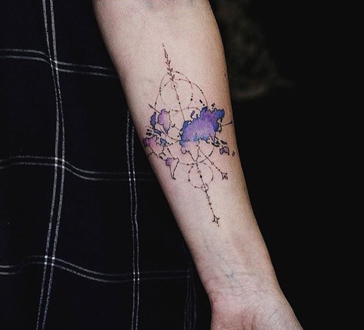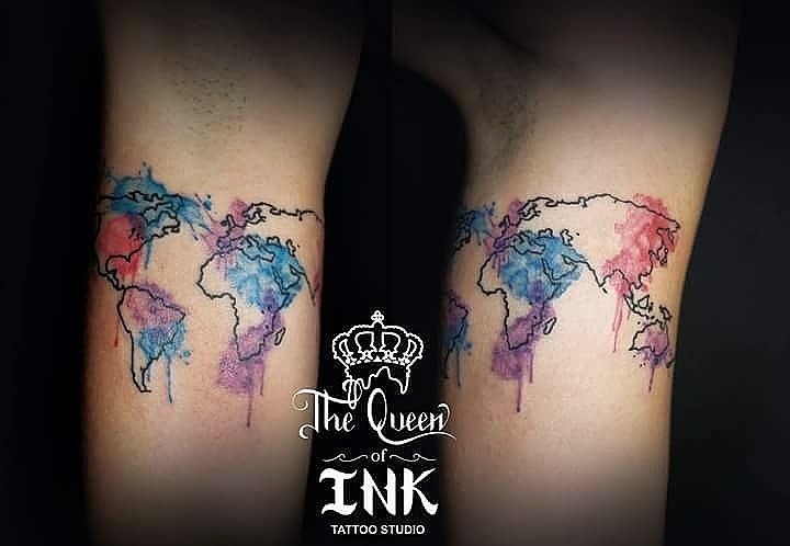 World Map Watercolor Tattoo