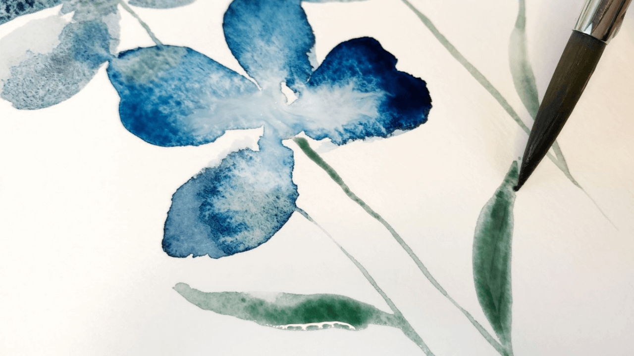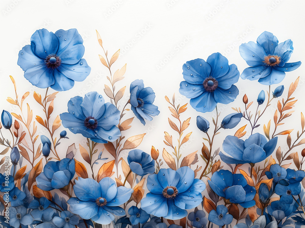 Watercolor Flowers Blue